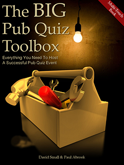 The BIG Pub Quiz Toolbox is a massive collection of tools for the budding Pub Quiz host, covering all aspects of setting up a Pub Quiz Event, hundreds of top tips, equipment you will need, rules of the game and features a massive selection of great quiz material to get you up and running...