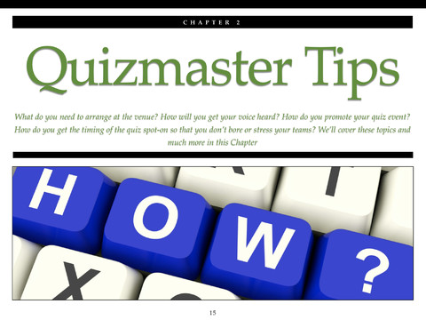 The first four chapters take the reader from the concept and history of the pub quiz through to Quizmaster tips and ideas, quiz round structure, dealing with cheaters, what to do in the event of tie scores, event setup & timing and includes several interactive features.
