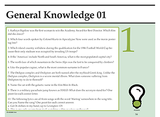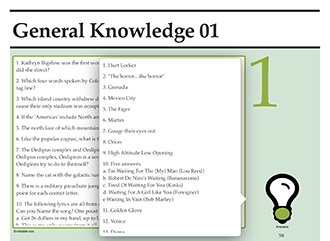 - 60 rounds of general knowledge questions (20 questions per round), perfect for any standard pub quiz audience